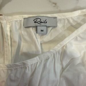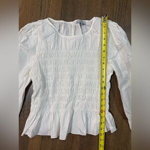 Rails Tabi Smocked Long Sleeve Top-Size Medium-White. Chic white blouse with smocked front. Long sleeves and ruffle hem. Perfect for versatile styling. Good used condition. See pictures for approximate measurements. Retail $198.