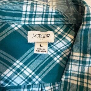 J.Crew Womens Teal White Plaid Button Down Shirt Long Sleeve Size L Pocket