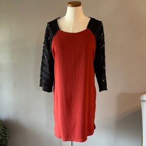 Line & Dot color block muni dress embellished beaded accent statement sleeves M