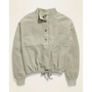 Old Navy Garment-Dyed Mock Neck Henley Sweatshirt Green Crop Drawstring Women S