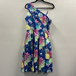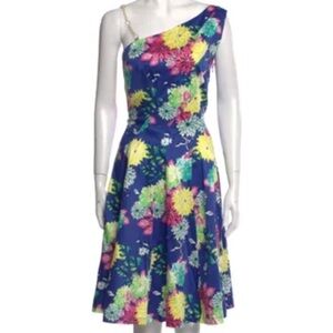 BGL Floral Print One Shoulder Cotton Dress Pleats Sz 10 (EU 42) Party Wedding