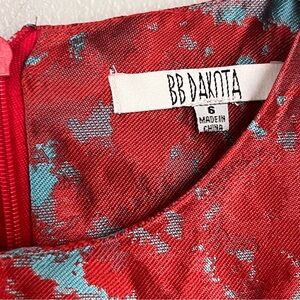 BB Dakota Red & Teal Metallic Fit and Flare Dress Size 6 Sleeveless Party Dress