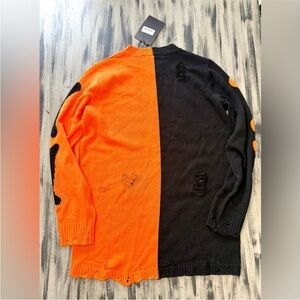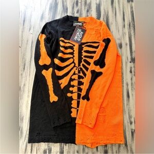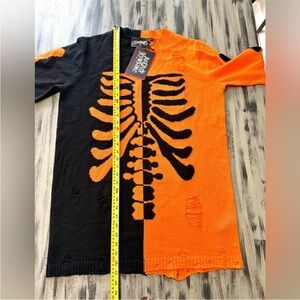 Killstar bold distressed drop shoulder skeleton sweater brand new with tags. Striking black and orange split contrast. Perfect for a unique punk grunge style statement