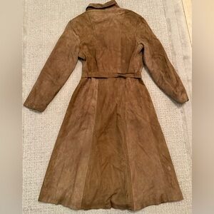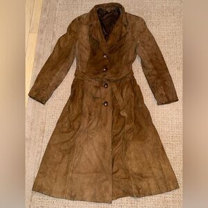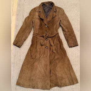 Vintage Brown Suede Leather Trench Coat Belted Long Jacket Size 48 small s