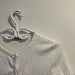 Korean brand 8 seconds white cropped button-up top with ruffles on the sleeves and at the bottom. 95% cotton.