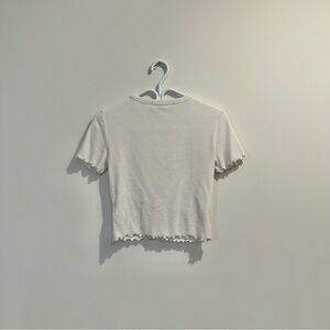 8 seconds | women's small white Button-Up Short Sleeve Top with ruffles