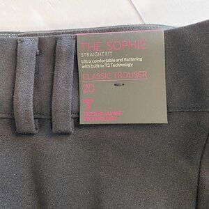 The Sophie Style SZ 20R Black Dress Pants. The Sophie pant is a straight leg, mid- rise pant with a straight fit designed for body shapes that are fuller in the waist and straighter through the hip and thigh. The Sophie pants come in differenet inseam lenths to suit various heights. These listed pants are regular in length for women 5'4" to 5'8" (e.g., typically a 31" inseam).