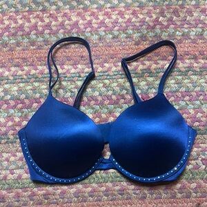 NWOT VICTORIAS SECRET BLUE SATIN RHINESTONE VERY SEXY PUSH UP BRA