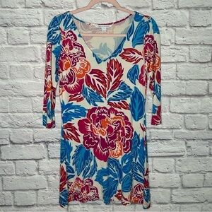 Diane Von Furstenberg Kaden Floral Pink Blue White Silk Jersey Dress