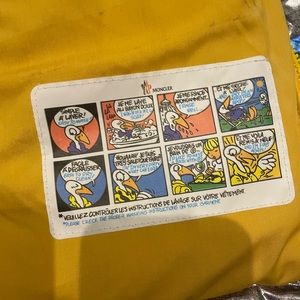 Stylish silver puffer jacket with vibrant yellow lining. Features a cozy hood and front pockets. Perfect for keeping warm.