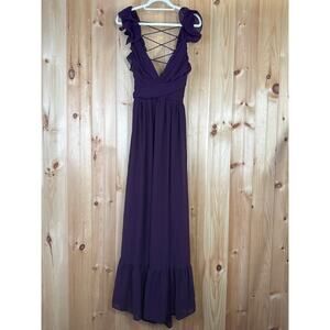 NWOT Lulus Soiree Celebration Purple Ruffled Lace-Up Maxi Dress Bridesmaid Sz XL