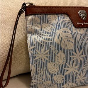 Functionality: Designed as a multi-purpose accessory, it is often used for travel, the beach, or as a "wet bikini bag" to keep damp items separate. Stylish Tommy Bahama clutch with a blue and white floral pattern. Features a brown accent and wrist strap.