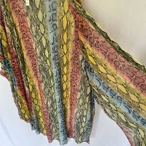 Multicolor snakeskin print sheer short sleeve open front cardigan kimono