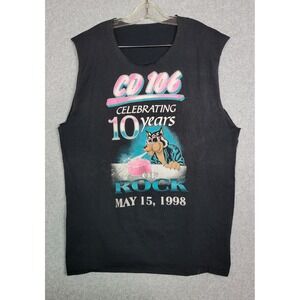 Vtg 1998 CD 106 Radio Station 10 Years of Rock Wolf Muscle Tee Cut Black Large