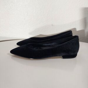 BIRDIES The Goldfinch 15 Black Velvet Pointed Toe V-Throat Slip On Flat WM Sz 7