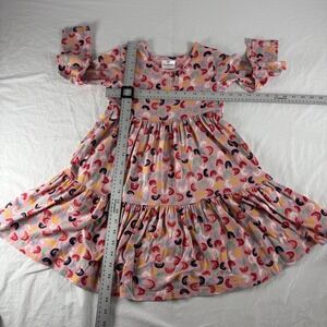 Hanna Andersson Size 4/5 (110cm) Pink Rainbow Print Tiered Long Sleeve Dress