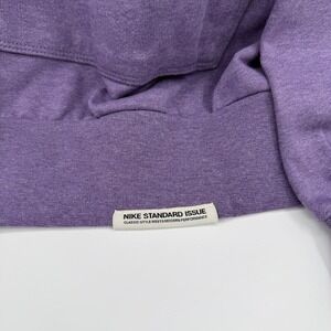 Nike Standard Issue basketball hoodie in a heathered purple shade blends classic style with modern performance. Constructed from moisture-wicking Dri-FIT fabric, this loose-fit pullover features a soft French terry interior and a structured hood with knotted drawcords. A unique vertical zippered utility pocket on the side provides secure storage for essentials alongside the traditional kangaroo front pocket. Finished with an embroidered Swoosh on the chest and a woven Standard Issue label at the hem, this versatile layer is designed for both the court and everyday wear.