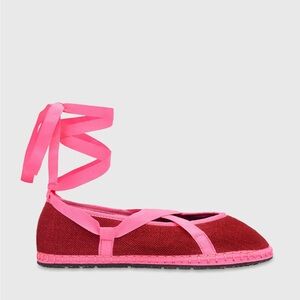 NWT Flabelus Women's Red and Pink Linen Ballet Flats