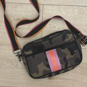 Camo Neoprene Crossbody Bag with Pink and Orange Strap