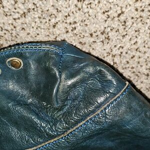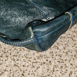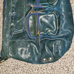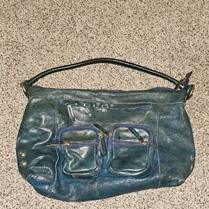 J Crew Stylish Blue Leather Shoulder Bag Utility Vibe Lots Of Pockets
