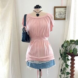 Y2K The Limited Pink Babydoll Top Size Large Tie Back Coquette Soft Girl Ballet