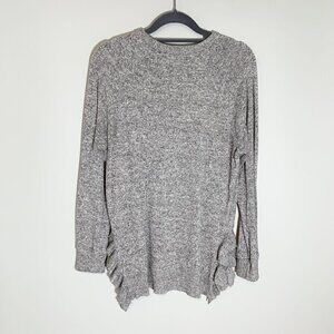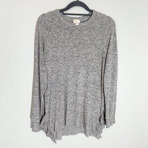 Anthropologie Postmark Grey Marl Ruffle Hem Knit Pullover Sweater Womens XS