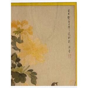 Vintage Tong Shiang Chang Bird and Chrysanthemum Mid Century Framed Art Print