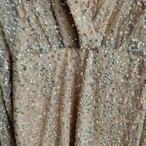 The neutral champagne tone makes it perfect for bridal events, New Year’s Eve, holiday parties, Vegas birthdays, rehearsal dinners, or any glam night out.