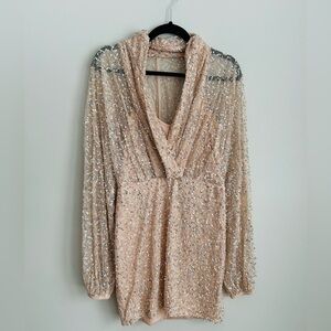Mac Duggal Beaded Champagne Mini Dress NWT | Long Sleeve Cocktail Size 8