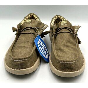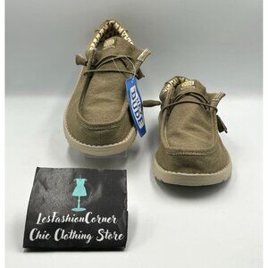 NWT Hey Dude Men's Khaki Canvas Wally Stretch Tobacco Loafers Shoes Size 10 3202