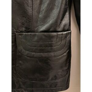 This Pendleton jacket is crafted for women, featuring a sleek solid black leather outer shell with a stylish quilted collar design. It includes a button front closure and two front pockets, perfect for casual occasions. The jacket is lined with polyester and is a regular size small. This vintage piece requires dry cleaning and is pre-owned, originating from a smoke-free home. Every purchase supports local small businesses. Brand: Pendleton Type: Jacket Size: S Style: Regular Outer shell material: Leather Department: Women Color: Black Lining material: Polyester Features: Button Front, Quilted Collar Design, Two Front Pockets Pattern: Solid Closure: Button Occasion: Casual Vintage Garment care: Dry Clean Only Comes from: Smoke Free Home Support: Every Purchase Supports Local Small Businesses Comes from Smoke Free Home Every Purchase you make helps supports local small businesses