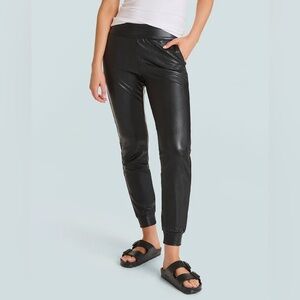COMMANDO • black faux leather high rise joggers - Large