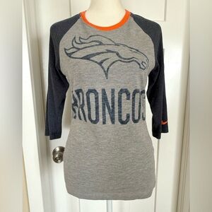 Nike NFL Denver Broncos Women’s 3/4 Sleeve Raglan Tee Small Gray/Orange