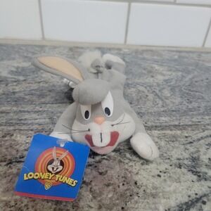 This product is an 8-inch plush beanie toy of Bugs Bunny from the year 1997, made by Play by Play. It still has its original tags attached, making it a collectible item for fans of Ty's Beanie Babies. This vintage piece captures the nostalgia of the popular franchise from the late 90s, adding to its appeal for collectors looking for rare and authentic items.