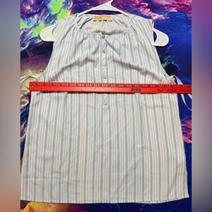 Chic A-line tank with light blue and white stripes. Features button detailing. Ideal for versatile styling. Top is in great condition.