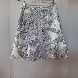 Tracy Reese knee-length skirt. Black and cream pattern. Side zip closure. Lined. Silk linen Blend. Womens size 0. Waist flat lay 14.5" length from waist to hem 21.5" measurements are approximate