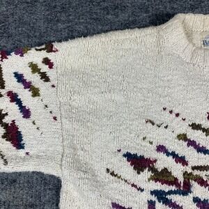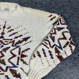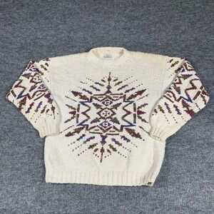 Vintge BD Baggies Sweater Mens Medium White Handknit Aztec Southwestern Abstract