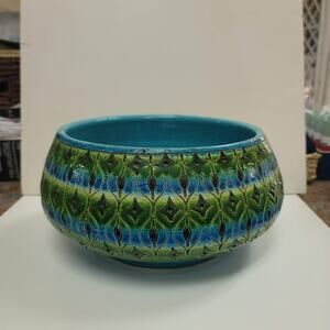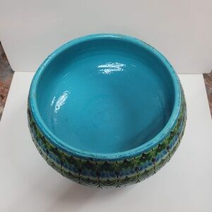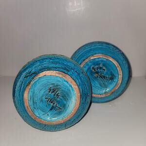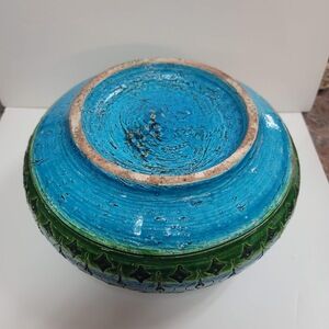 Bitossi Italy Console Bowl w/ Matching Candlestick Art Pottery Rimini blue Green