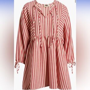 Huxley Long Sleeve Babydoll Red White Striped Dress Small FRNCH S