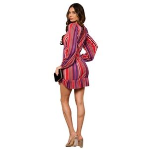 Vibrant long sleeve bodycon mini dress that features a chic V-neckline and a stunning multi-color palette. Perfect for brunch dates, resort getaways, or casual outings, this dress combines style and comfort. The flattering silhouette hugs the body in all the right places, making it a versatile staple that can be dressed up or down effortlessly.