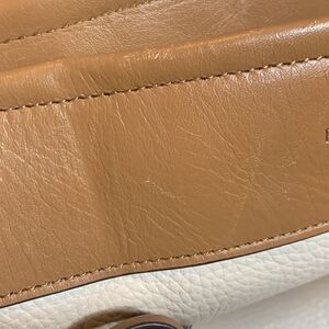 Some slight scratches (pictured) on front leather where logo is.