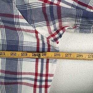 Vintage Polo Sport Ralph Lauren Men's M Red Blue Plaid Linen Blend Camp Shirt