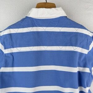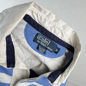 Vtg Polo Ralph Lauren Men's M Short Sleeve Quilted Rugby Light Blue White Stripe
