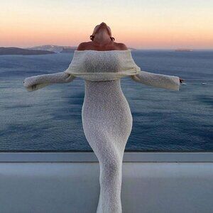 Sexy Women's Beach Vacation Style Plain Semi-Sheer off shoulder maxi Dress