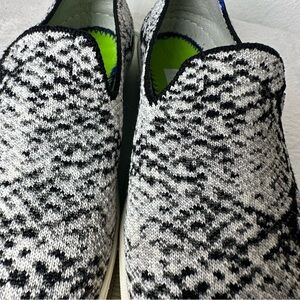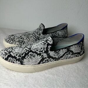 Rothy's The Original Slip- On Black and Cream Snake Print Washable Sneakers