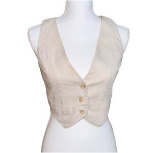 Windsor Linen Cotton Blend Vest Tan Beige Classic Womens Size XS