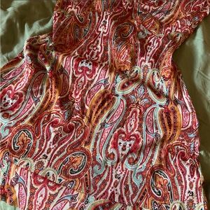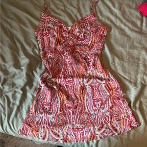Brand is PROMOD, Micro mesh Red paisley mini dress with adjustable straps