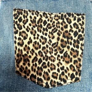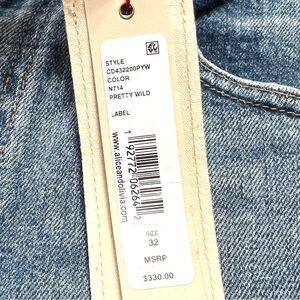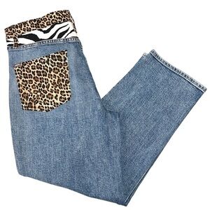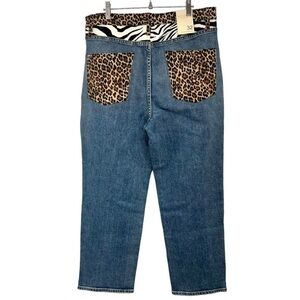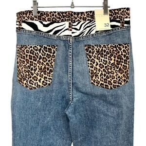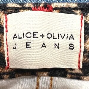 Alice + Olivia Amazing High Rise Girlfriend Slim Straight Animal Print Trim Jeans Pretty Wild Wash Women 32 NWT