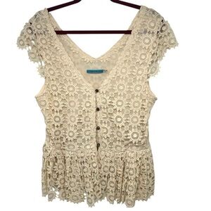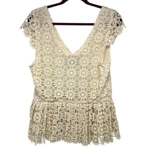 Alice + Olivia Wendy Cream Lace Button Front Vest Peplum Top Women’s Large