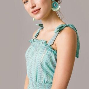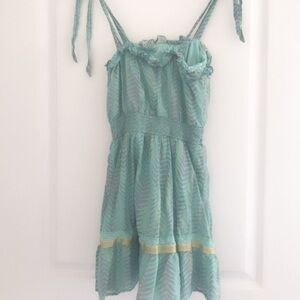 Francesca’s Layla Lurex Mini Dress mint and gold shoulder ties size small